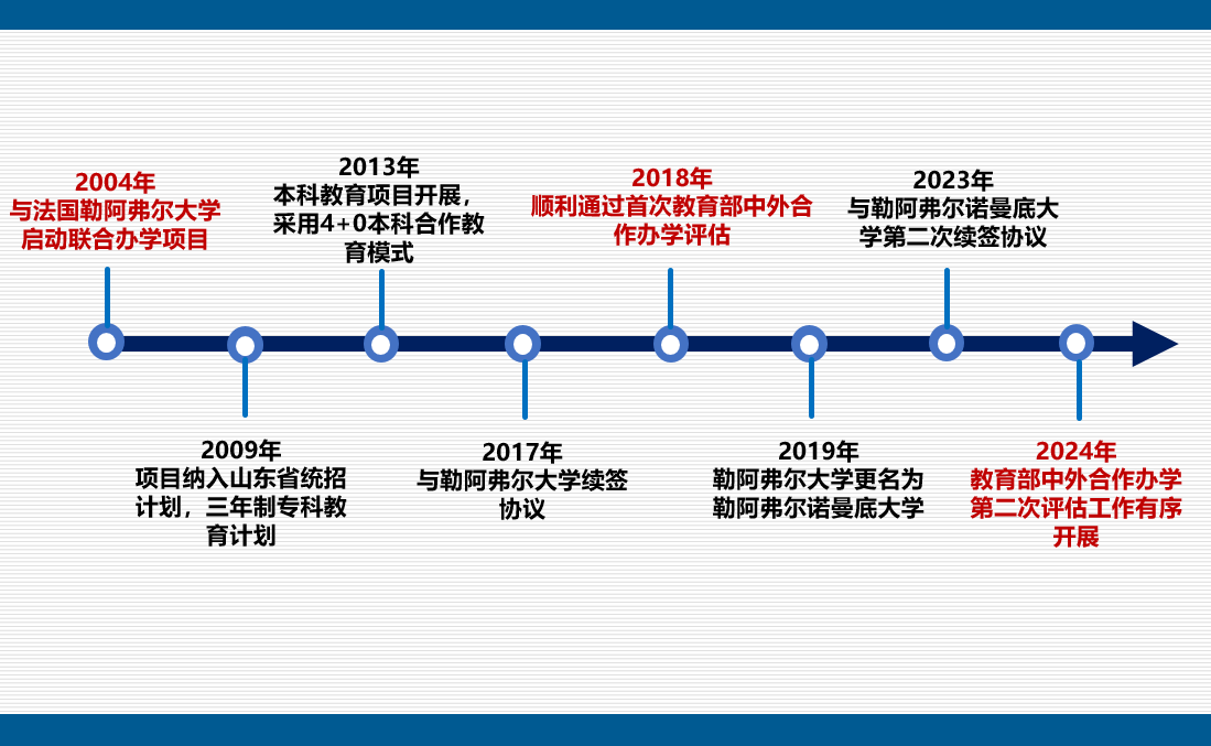 与法国勒阿弗尔诺曼底大学合作举办自动化专业本科教育项目是2014年经教育部审批通过并纳入当年山东省计划内本科招生,学生通过全国统一高考录取。本项目主要依托于我校成立较早的5个本科专业之一自动化专业。该专业2010年获批一级学科硕士点,2011年获省品牌特色专业,2016年入选山东省高水平应用型立项专业群,2019年入选省级一流本科专业建设点,2020年通过工程专业认证,2021年入选国家一流本科专业建设点。