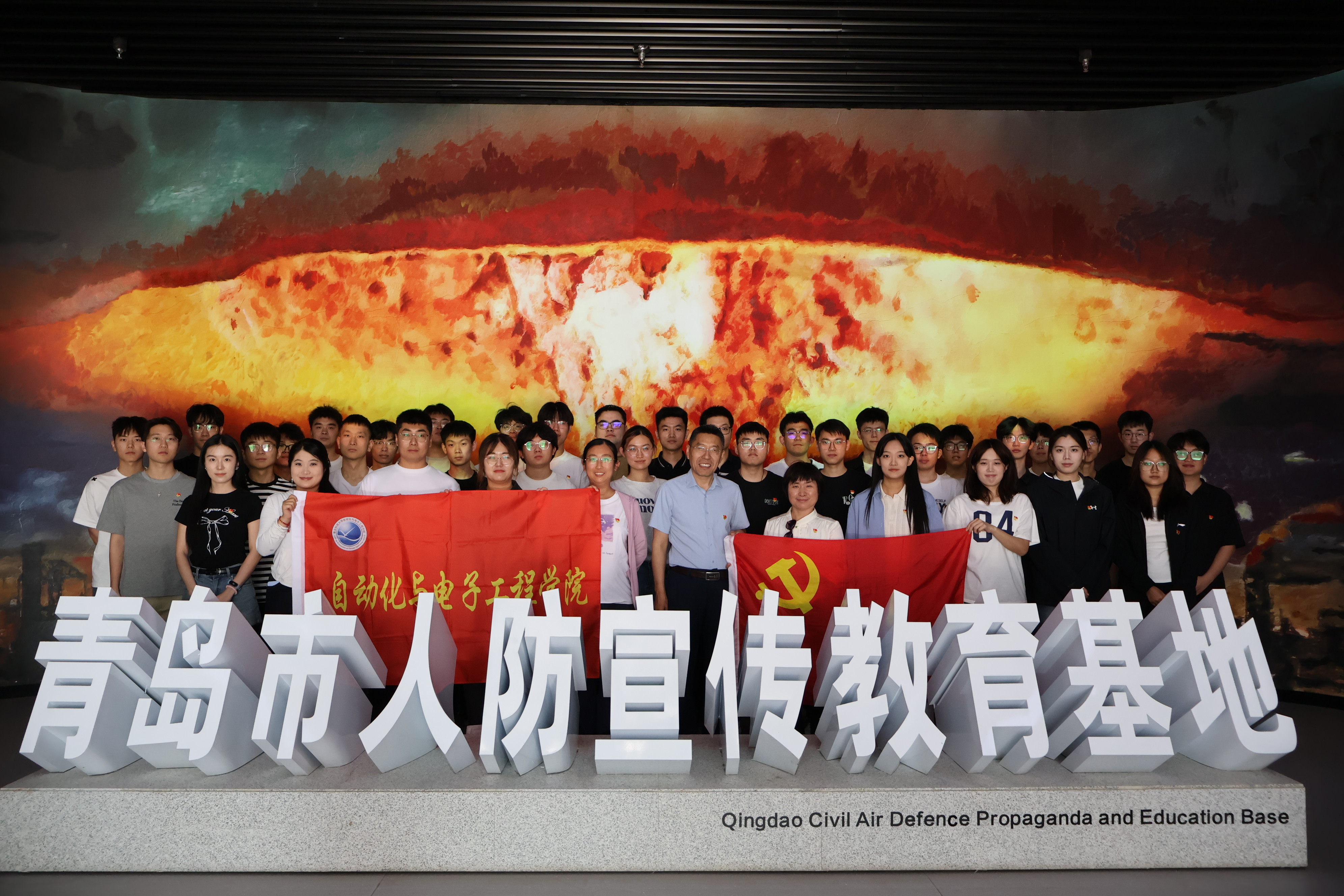 党委本科生第一党支部联合办公室党支部,组织50余名师生党员前往青岛市人防教育基地开展“AI领航·红色研学”主题党日,以沉浸式学习深化对国家安全的理解和践行。