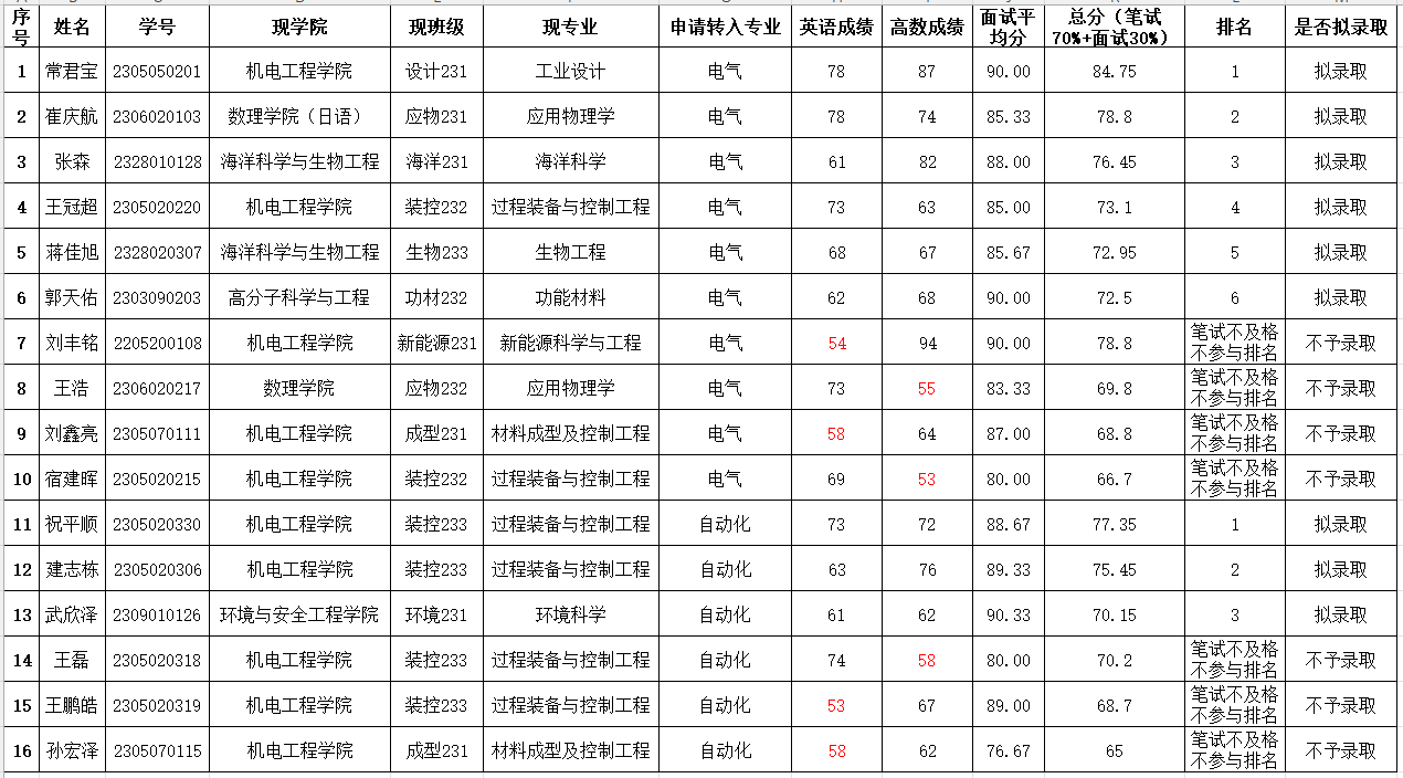 2023级本科学生转专业拟录取公示,公示时间2024年3月8日-3月11日,有问题请联系笔趣阁 教学办88959930。