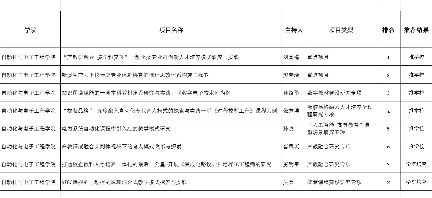 根据学校《关于开展2024年度校级本科教学改革研究项目和专项项目立项申报及2022年度项目结题工作的通知》,我院通过多种形式广泛宣传和动员,截止至10月20日,收到教改立项2项,专项项目6 项共8项,学院聘请院外专家坚持公开、公平、公正,择优遴选原则进行评审,依照2024年校级教研教改项目申报限额6项,排序前6名推送学校,其他项目给予学院培育,下一批择优优先推送。排序公示入下: