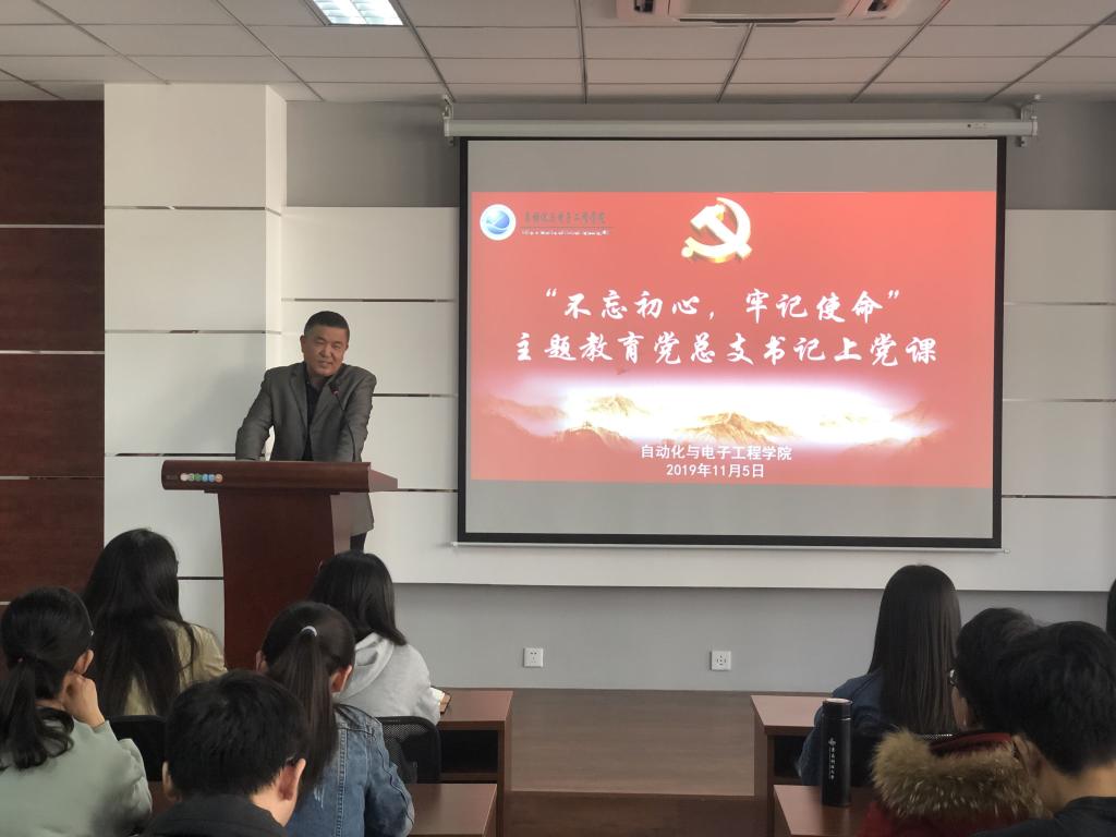 党总支书记郭仲聚在410会议室为全体学生党员上党课,党课由党总支副书记马寒主持。