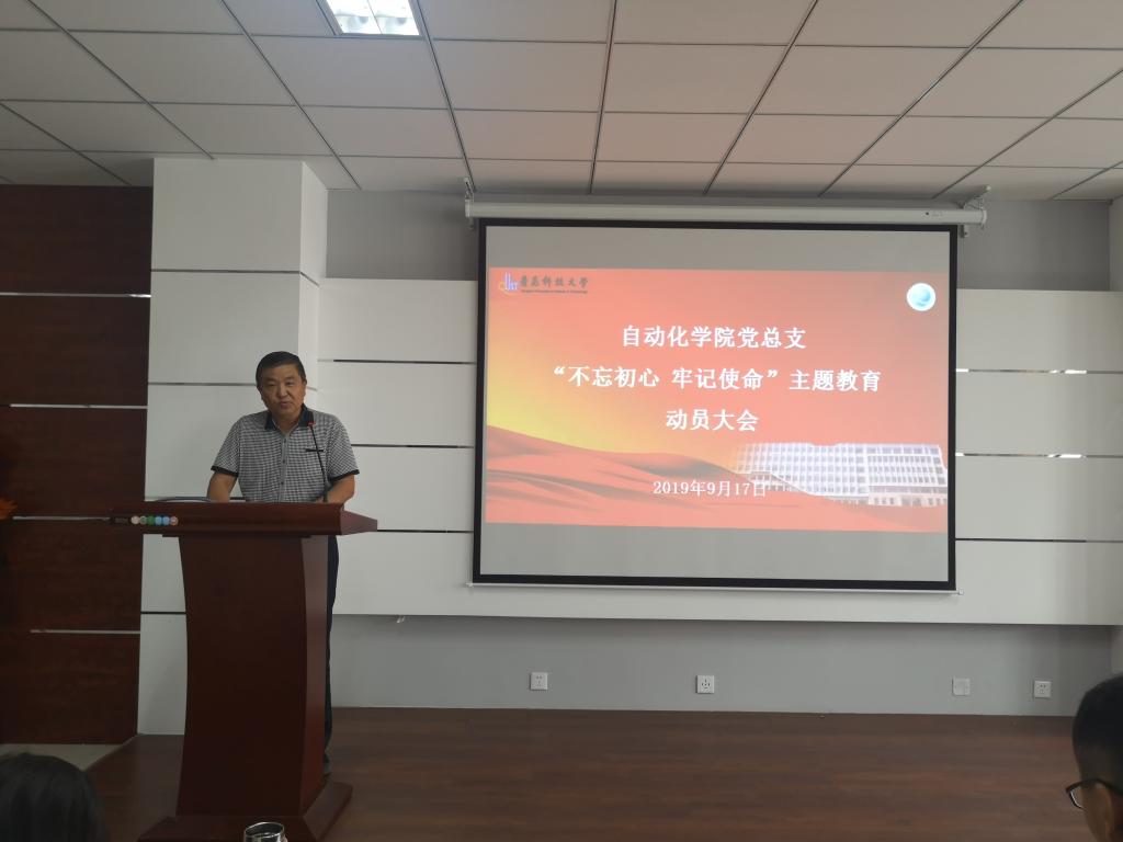 学院党总支书记郭仲聚就学院开展“不忘初心、牢记使命”主题教育作了动员讲话。他传达了党委书记马连湘在学校“不忘初心、牢记使命”主题教育工作会议上的讲话精神,和省委巡回指导组副组长韩斌的意见要求,对学院主题教育工作作出了全面部署。郭仲聚强调:一要提高政治站位,深刻认识主题教育重大意义;二要把握总体要求,落实落细主题教育重点措施;三要落实领导责任,充分保证主题教育取得实效。他指出,要以认真负责的态度、改革创新的精神、求真务实的作风,扎扎实实把主题教育组织好、开展好;要用高标准把好质量关,用严要求把好责任关,用管用制度把好长效关,确保主题教育高质量完成。党总支副书记兼副院长马寒就第二批主题教育的时间、要求、任务及目标做了通报。