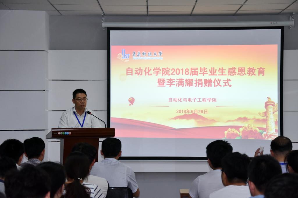 举行2018届毕业生感恩教育暨李满耀捐赠仪式,副校长吕万翔出席仪式并讲话。宣传部、团委、基金会、学生处等部门相关负责人、笔趣阁