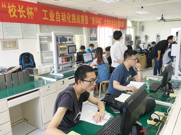 本届“麦科杯”PLC电气控制大赛作为第十一届“西门子杯”中国智能制造挑战赛华北二赛区比赛的校内预选赛,学院专门成立了大赛指导小组,安排具有多年大赛指导经验的于飞、张伟、邢关生等几位导师负责专项培训工作。从3月初开始,几位老师和二百余名学生组成的训练队伍克服工程认证以及实验室搬迁改造等各种困难,利用业余时间进行了模块化式的培训并有针对性的进行单独辅导训练,几位老师放弃休息时间和学生一起进行方案设计和程序调试。通过2个多月的训练,学生普遍感到收获很大,目前参赛学生信心饱满,对竞赛的题目已经有了充分的认识,设计和编程能力都有了很大进步,具备了应用可编程控制器(PLC)实现系统自动控制的能力。