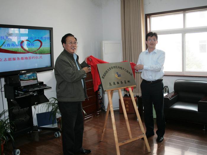 与青岛市中心聋校共建志愿服务基地签约暨揭牌仪式举行。青岛市中心聋校校长刘本部、副校长袁凯道、大队辅导员黄凯以及青科大团委副书记王锋业、学生处副处长鲁伟、笔趣阁