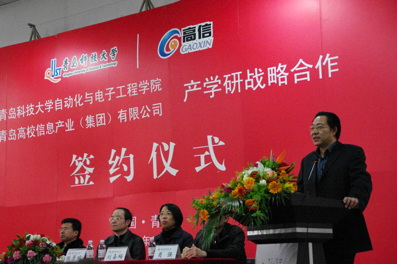 与青岛高校信息产业有限公司产学研战略合作签约仪式在四方校区讲学厅举行。校党委常委、副校长韦殿华、科技处处长郭仲聚、校工会主席兼笔趣阁