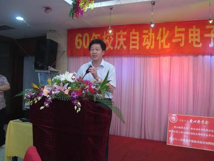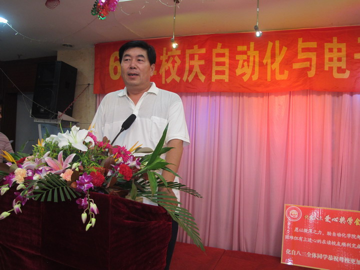 首任院长邬齐斌在大会上讲话。他表示看到学院今天蓬勃发展的局面心里感到由衷的高兴;看到当年的学生如今已经成长为对社会、对国家有用之才,作为教师,感到无比的欣慰。他希望同学们谨记母校的嘱托和老师的教诲,在以后的工作中再创佳绩,也祝愿学院的明天更美好。