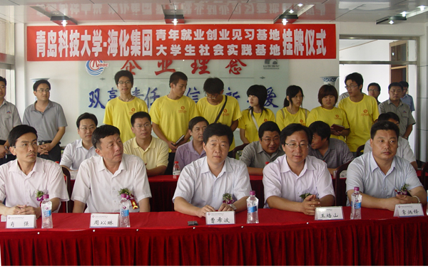 与山东海化股份有限公司“青年就业创业见习基地”、“学士后流动站”和“大学生社会实践基地”共建合作协议,并为三个基地揭牌。揭牌仪式后,全体人员参观了海化集团。
