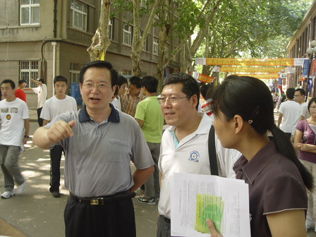 党总支书记、院长王培山、副书记吴汉勇等有关负责人的陪同下,罗公利首先考察了迎新现场的具体情况。对学院迎新工作给予了充分肯定,他对我院精心安排和周密部署,并结合自己院部的实际情况准备了特色鲜明、形式新颖的教育和服务活动表示赞扬。同时高度赞扬了我院文明教育示范课的理念和在这方面做出的努力。罗校长强调,迎新是学校一年一度的大事,应切实提高对迎新工作的重视,敦促我院领导要不断创新形式,在细节上下功夫,真正体现“以学生为本”。罗公利希望我院院长、书记能为新生上第一堂课,从学业、择业、创业三个方面给新生做好引导,帮助新生尽快适应大学生活,并树立明确的目标,做好自己的大学生涯规划。