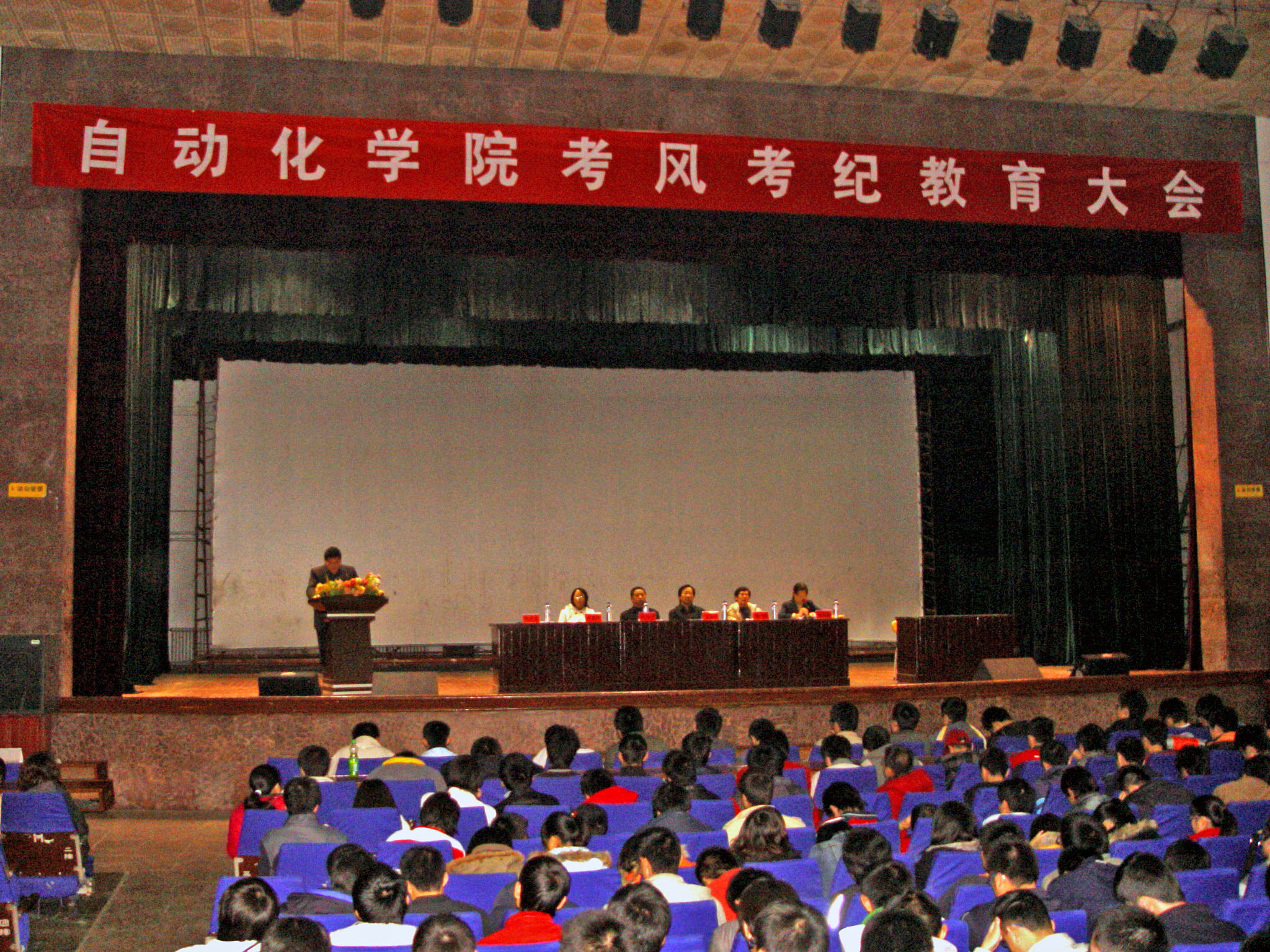会上,首先由学院党总支书记兼院长王培山做考风考纪教育动员。王培山围绕教风学风建设,通过对实际案例的分析让同学们充分认识到加强考风考纪教育的重要性。他在讲话中殷切希望广大学生自觉、自律、自尊、自爱,在即将到来的期末考试中考出水平和风范,树立诚实守信的考风。