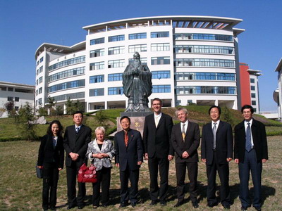 有关负责人的陪同下参观了我校图书馆及崂山校区。