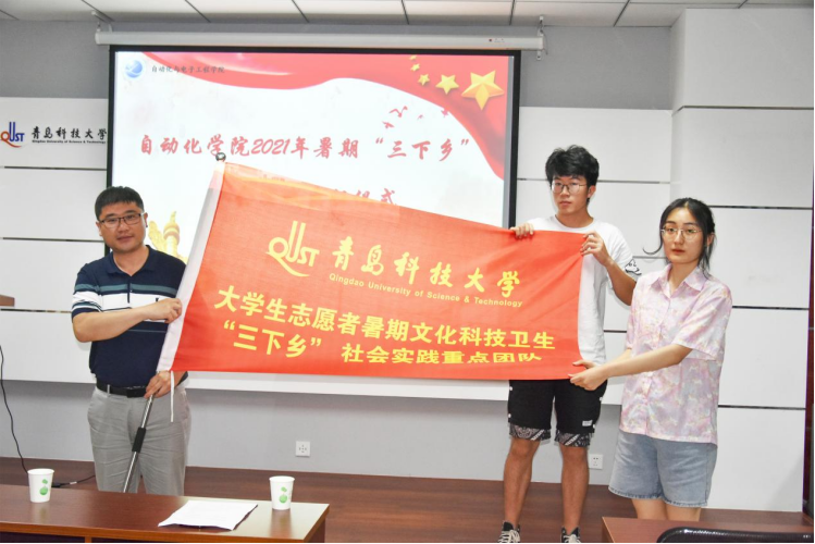 在学院楼410举行2021年暑期“三下乡”社会实践出征仪式。学院党委副书记兼副院长马寒,团委书记郭蒙蒙,团委副书记于彬、郝雄文,团委老师安柏雅、张郁浩以及“三下乡”团队代表参加仪式,仪式由于彬主持。