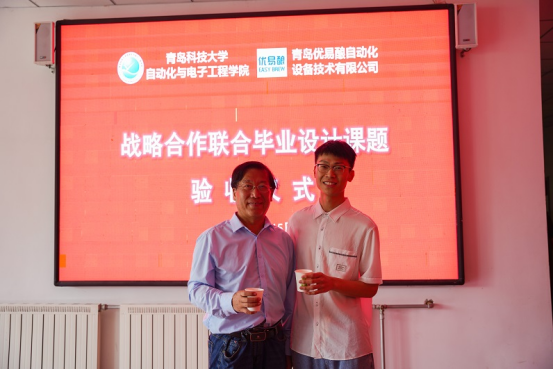 该课题基于青岛优易酿自动化设备技术有限公司捐赠给学院的一套啤酒精酿设备,由程换新教授指导、测控18级学生王鹏完成。课题利用德式精酿啤酒工艺配方,实现了啤酒酿造过程精准控制,达到了实验阶段既定指标的量产,其技术指标符合课题要求。验收现场,学院师生品鉴了自酿啤酒,给予一致好评。副院长曹梦龙为青岛优易酿自动化设备技术有限公司总经理刘永昌颁发优秀校外指导教师证书。据悉,青岛优易酿自动化设备技术有限公司为学院研究生和本科生共提供课题5项。