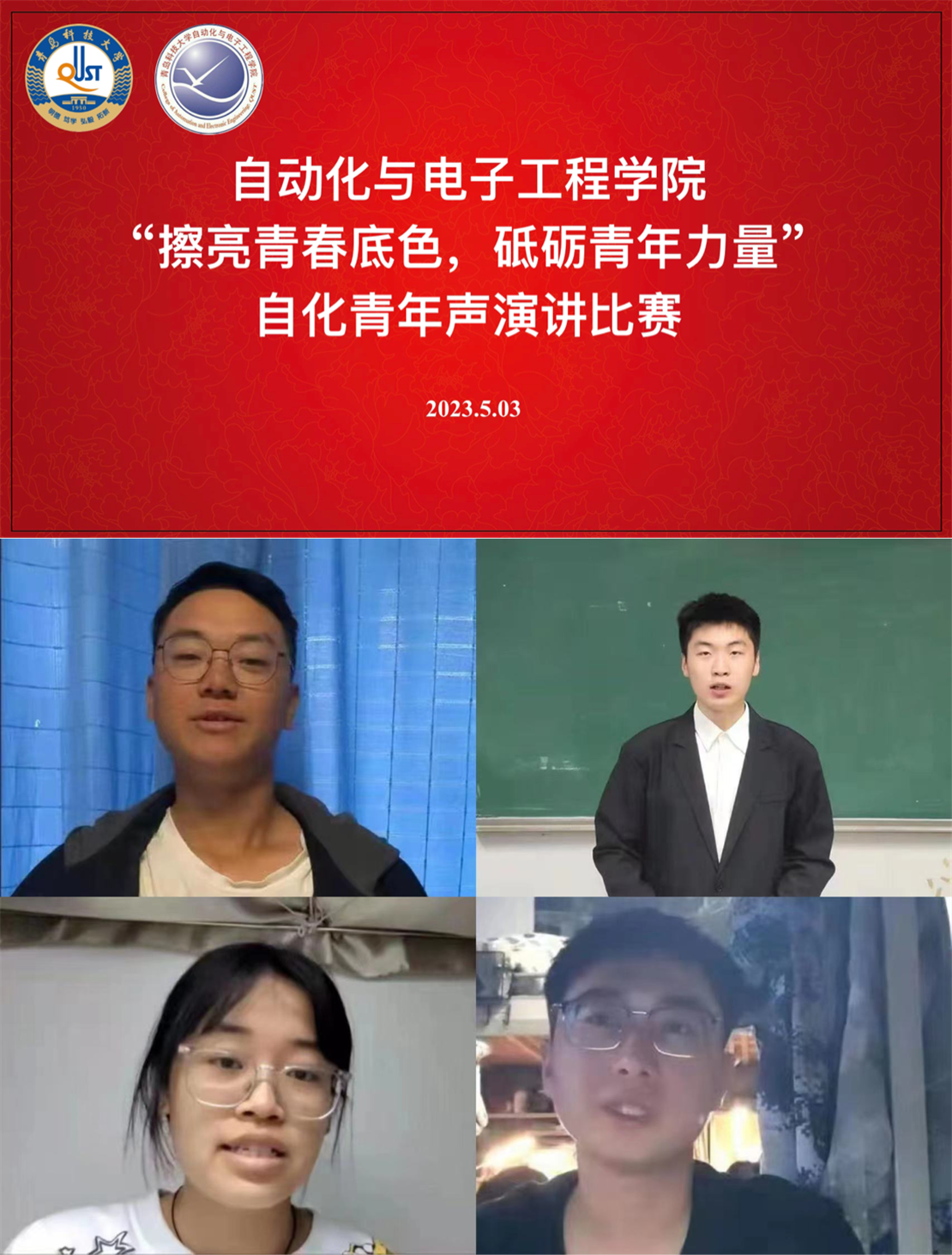 擦亮青春底色,砥砺青年力量。学院面向全体青年学子开展“自化青年声”演讲比赛(初赛),倾听青年声音,凝聚青春力量。团员青年们紧扣“青春心向党 奋进新征程”主题,聚焦“奋斗、青春、梦想”等主题词,站在青年立场,抒发所思所想、所感所悟,以不同的角度和视角,分享了自己对于青年成长、国家发展和社会问题的所思所想所得,以青年视角讲好中国故事,传播青年之声。