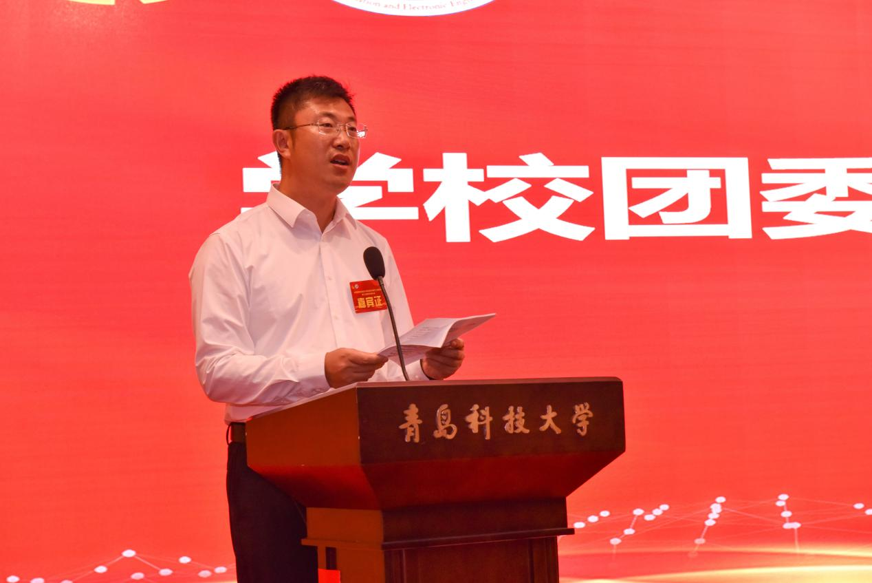 刘跃宁代表校团委向大会的召开表示热烈祝贺,他对学院团学工作予以了充分的肯定,并向学院广大团员青年分享了三点心得体会:一是坚守革命理想高于天的政治情怀,对党绝对忠诚;二是坚守撸起袖子加油干的奋斗情怀,练就过硬本领;三是坚守敢教日月换新天的改革情怀,锐意创新创造。