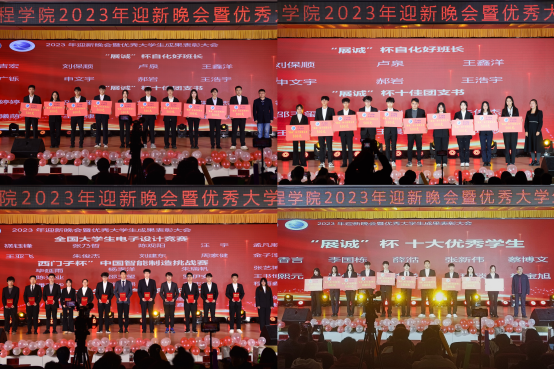 会上,王邑、马寒、李世密、王虹分别为荣获全国大学生电子设计竞赛、“西门子”杯中国智能制造挑战赛、全国大学生智能汽车竞赛以及“展诚”杯“自化好班长”、“十佳团支书”和“十大优秀学生”荣誉称号的同学颁奖。