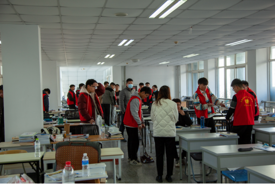 北七楼“学习吧”是学院学生在宿舍楼内自主学习的主要场所,其整体卫生环境及秩序管理直接影响学生的学习体验感和宿舍文明安全建设。在前期充分调研和提前部署的基础上,此次学院师生团队集体上阵,对“学习吧”开展“全面、深度”的卫生清理。志愿者们组织有序,分工明确,对窗台、过道等卫生死角进行细致清扫,对无人认领的书籍桌椅等物品统一归拢放置,杜绝杂物占座等现象出现。