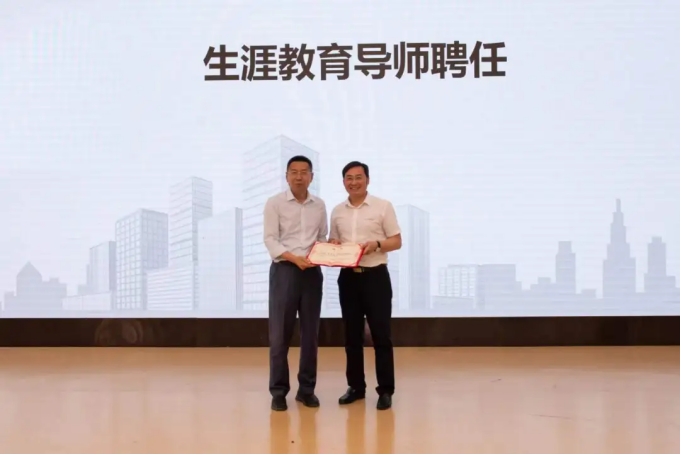 生涯教育季启动仪式上,巩敦卫为宋明忻颁发生涯导师聘书。