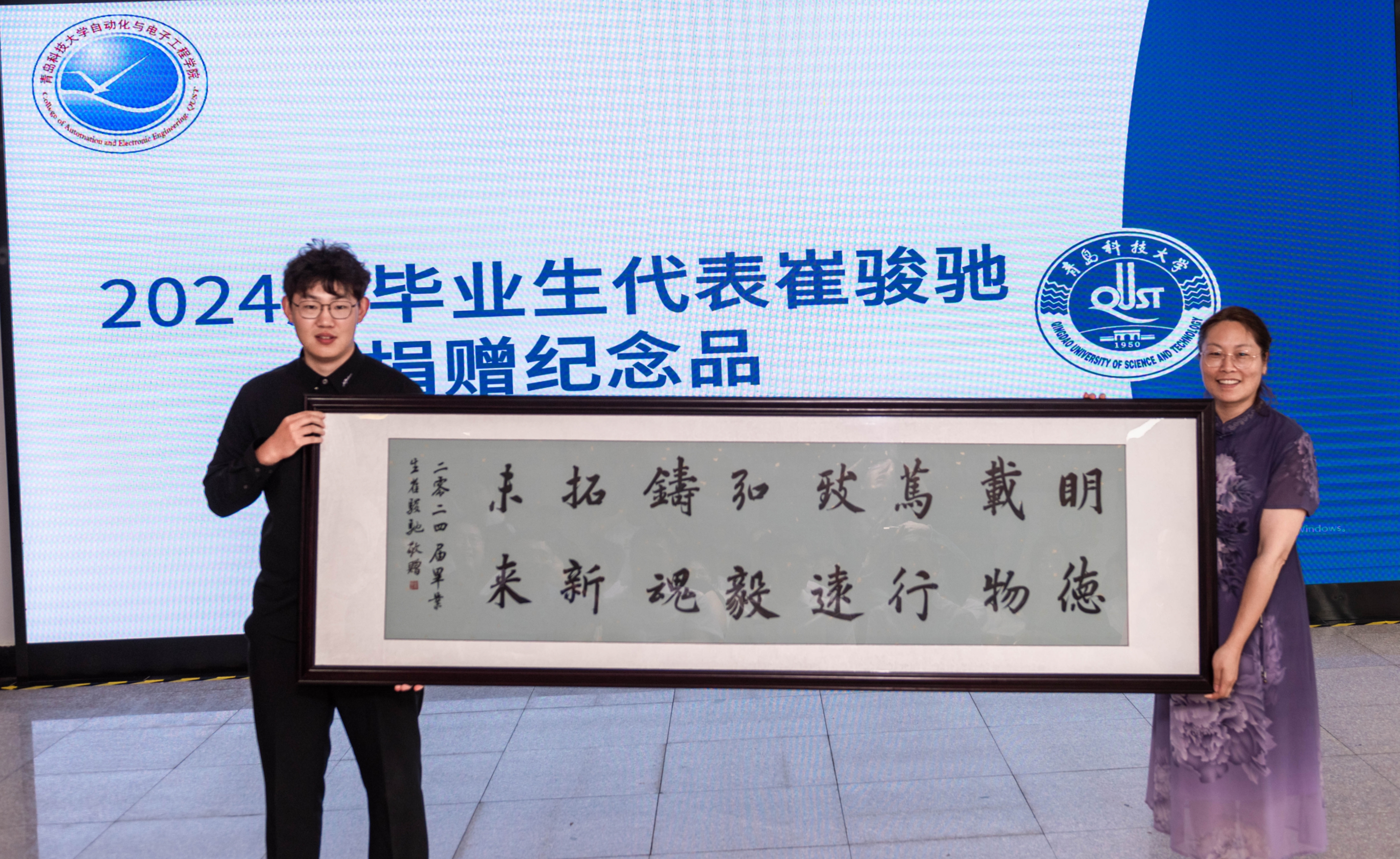 欢送会上,李卉代表学院接受了2024届毕业生代表崔骏驰捐赠的书法纪念品。巩敦卫在致辞中向2024届毕业生送上祝贺与祝福,向在一线教学、后勤保障等育人岗位上默默付出的教职工们表示敬意和诚挚感谢。巩敦卫以“三个希望”作与毕业生的“临别叮嘱”:一是空谈误国、实干兴邦。希望同学们立足本职岗位,在急难险重新任务中挺身而出,积极投身中国式现代化建设,在科技创新、乡村振兴、绿色发展、社会服务、卫国戍边等各方面建功立业;二是永葆初心、清澈纯粹。希望“自”家学子们继续发扬科大精神、践行橡胶品格,从大处着眼、难处用劲,始终保持笔趣阁