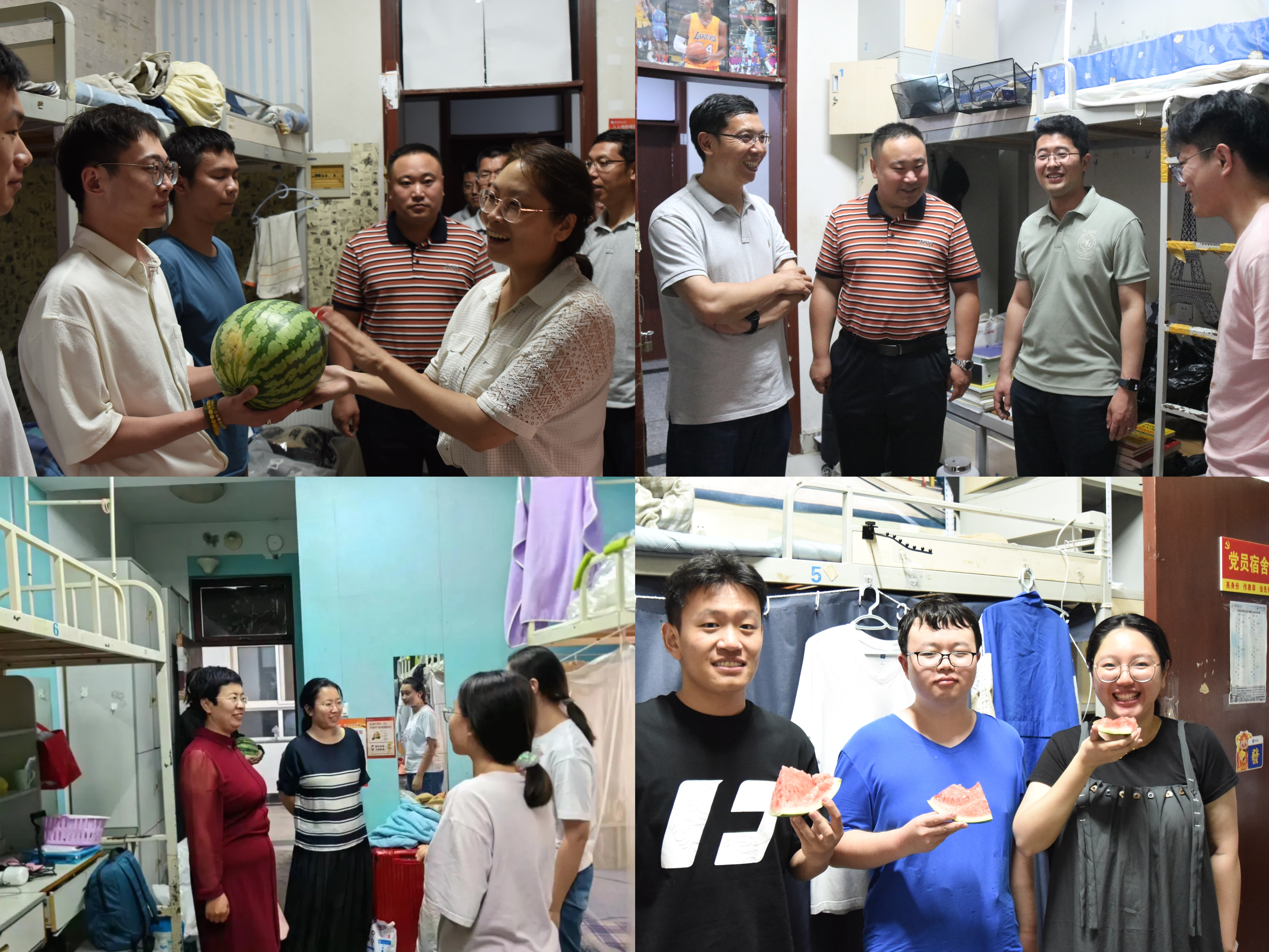 党政领导一行深入学生宿舍,为临行的毕业生送去夏日解暑的西瓜作为临别关怀。学院党委书记李卉、党委副书记兼副院长刘名森,副院长张伟、生宁、张典及辅导员走进毕业生宿舍,与毕业生亲切交流,送上这份“顶呱呱”的暖心。