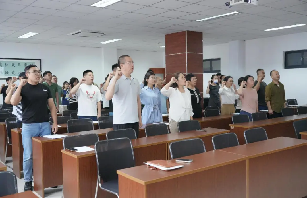 在庄重的氛围中,刘名森带领全体教师进行“树师德,正师风”宣誓仪式。
