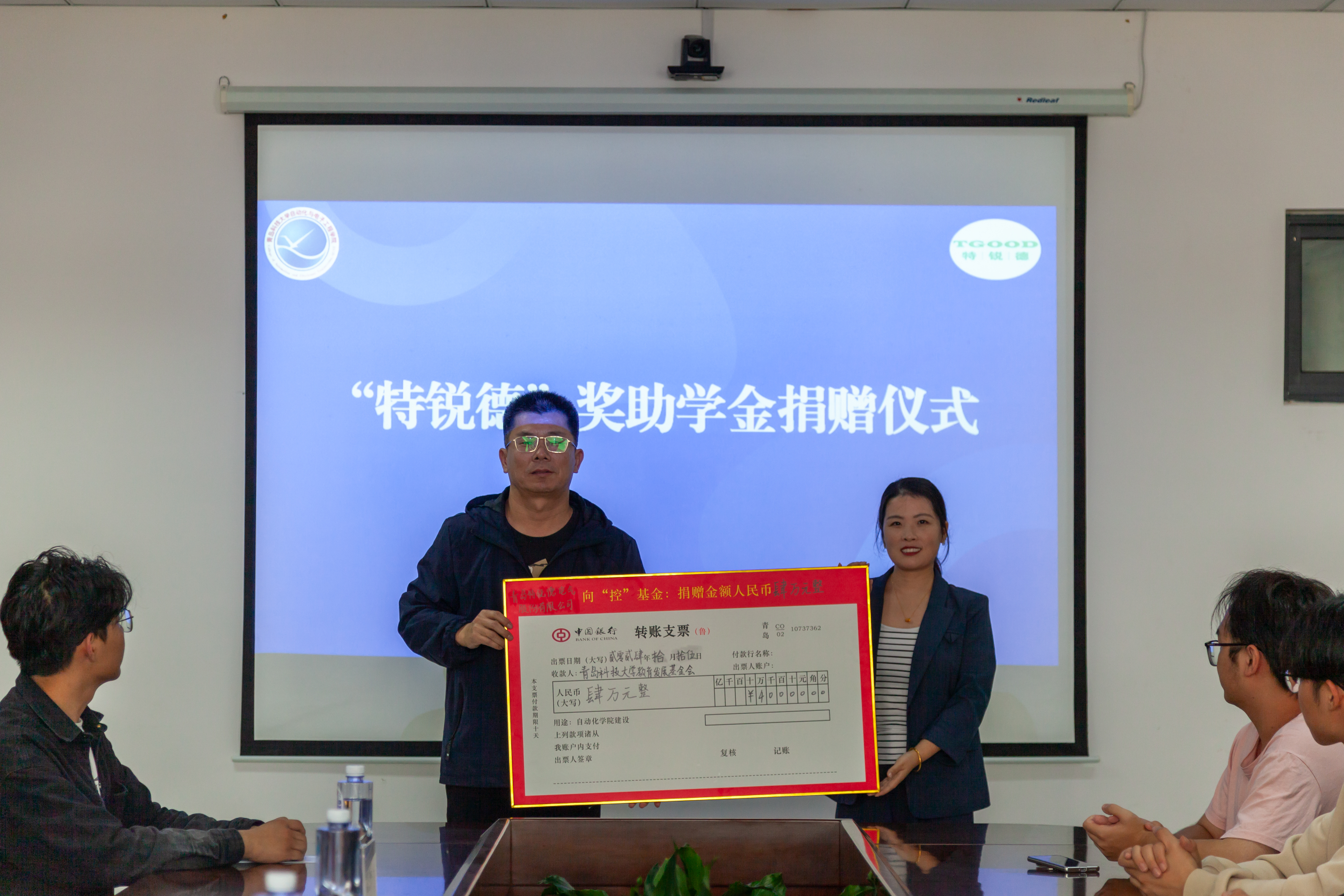 战略合作单位青岛特锐德电气股份有限公司出资人民币肆万元,用于资助我院全日制本科在校学生中学习刻苦、品行高尚、社会实践及综合素质等各方面突出的优秀学生,涵盖了困难生、体育活动、毕业生推荐和职业生涯规划等四类工作。