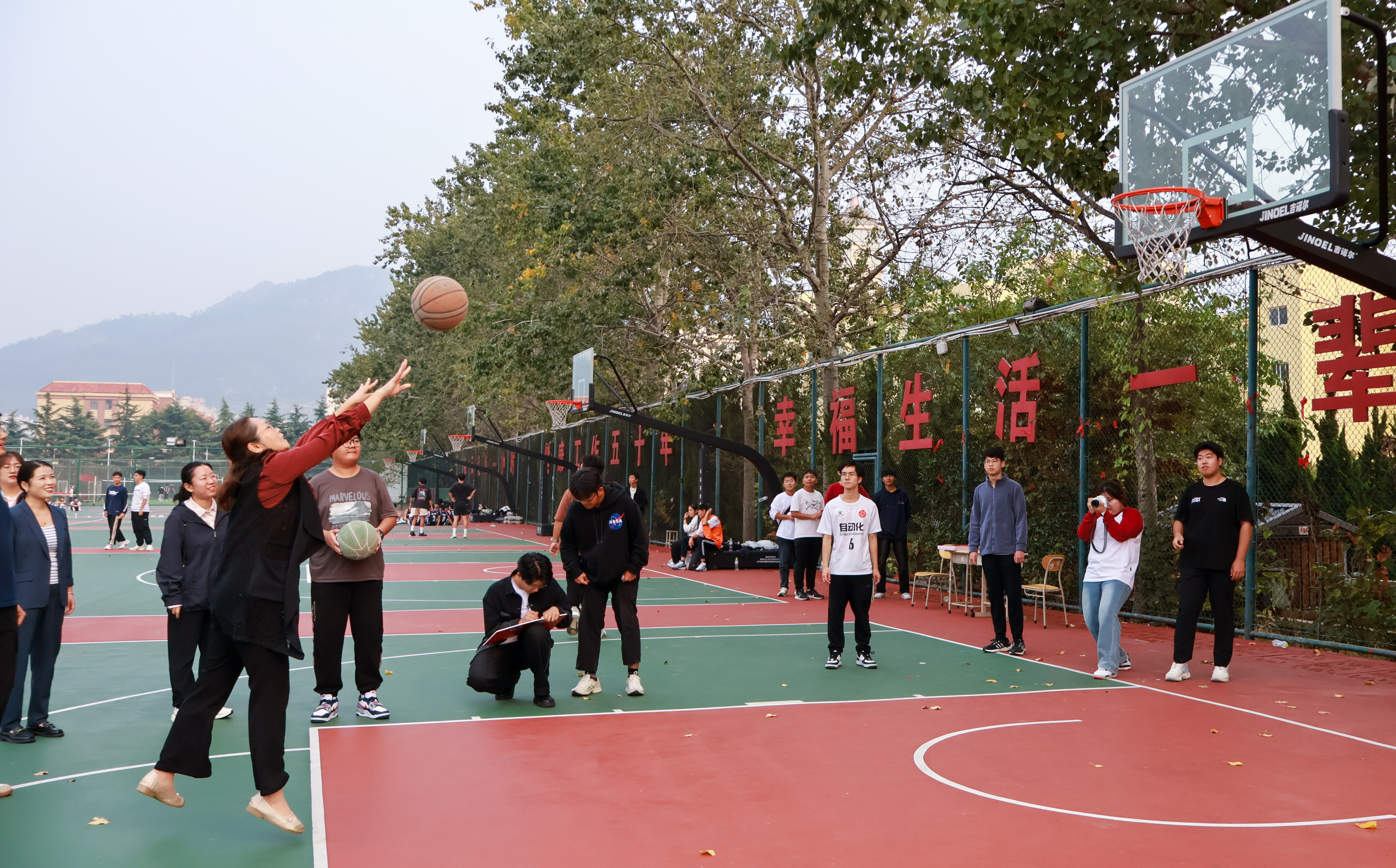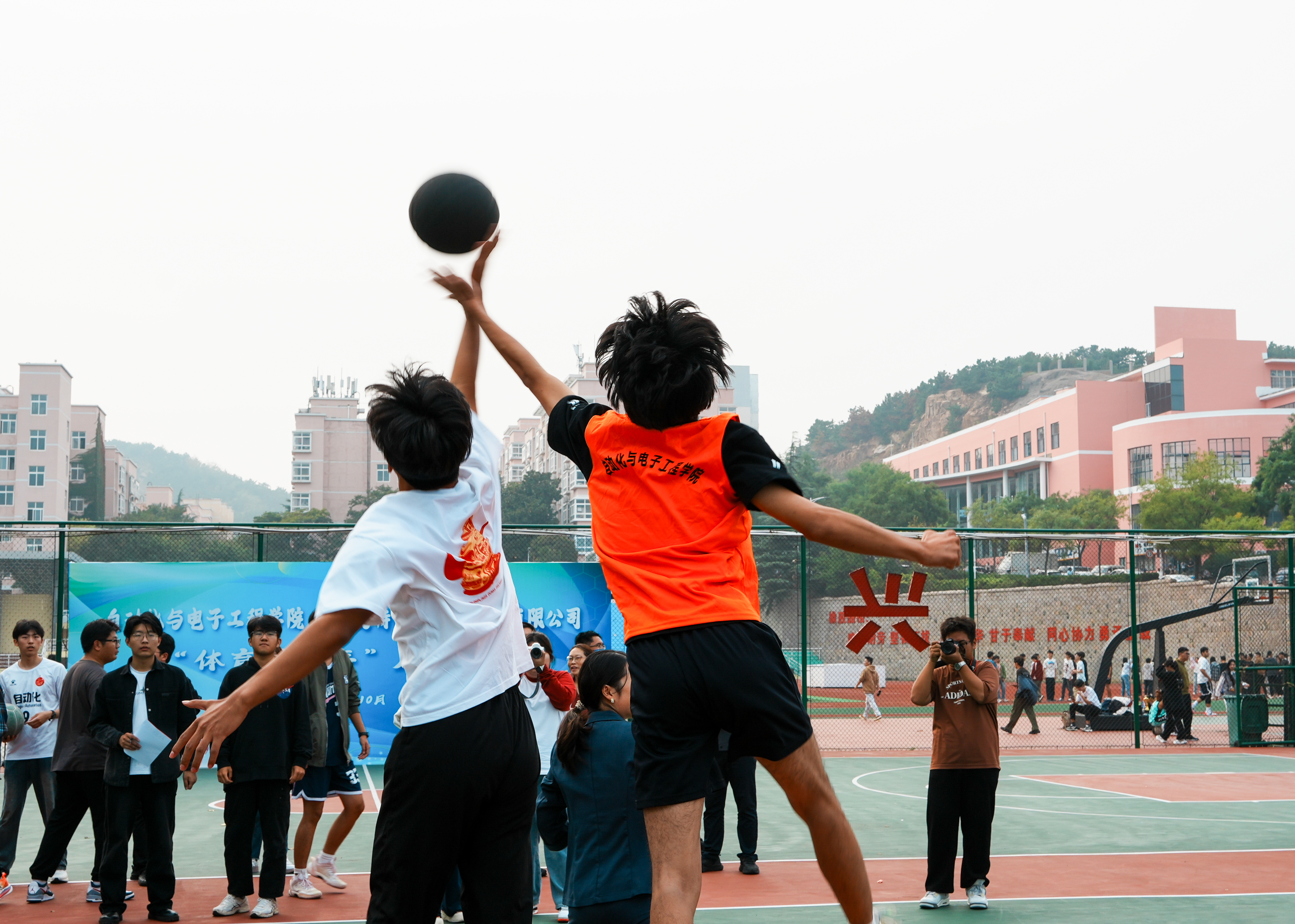 2024-2025学年“大学生体育活动年”活动方案》,详细介绍了本学年学院各类赛事安排,涵盖了“特锐德杯”联赛赛事、“爱体育”健康跑、“AI活力”四项素质锻炼、“知行”运动会四个建设项目。2023级电气工程及其自动化专业一班丁宁宣读《关于在全院学子中开展体育健身运动的倡议书》,号召全体同学积极参与到体育锻炼中来,共同营造健康向上的校园文化氛围。仪式最后,领导与老师投篮比赛点燃现场,气氛热烈。随后,校企篮球友谊赛激烈上演,“青春力量”“青春速度”比赛同步进行。