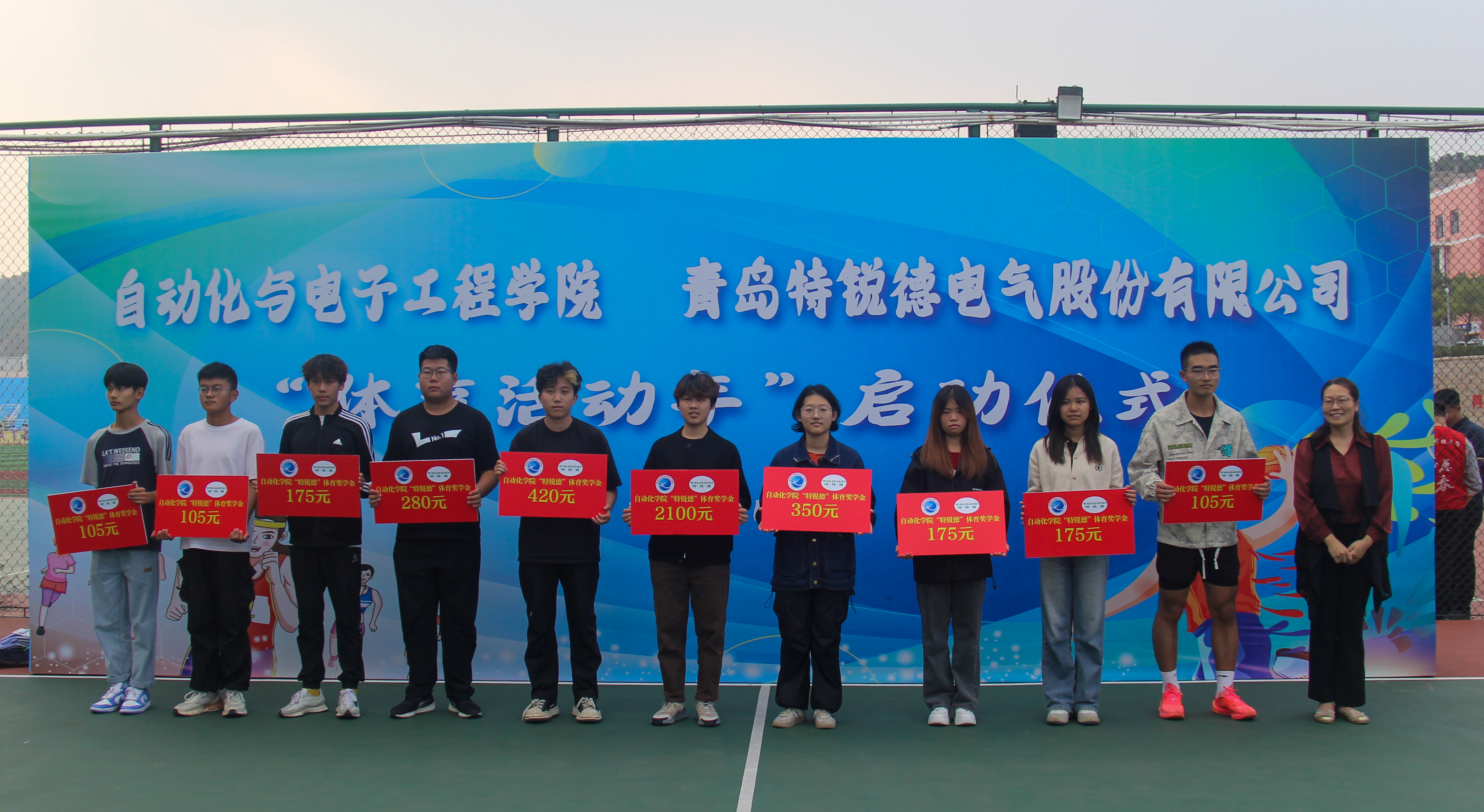 在启动仪式上,张莹为学院篮球队、飞盘队颁发“特锐德”体育奖学金,并为学院篮球队、飞盘队、排球队、足球队、田径队及八段锦训练队发放活动经费。李卉为在2024年笔趣阁