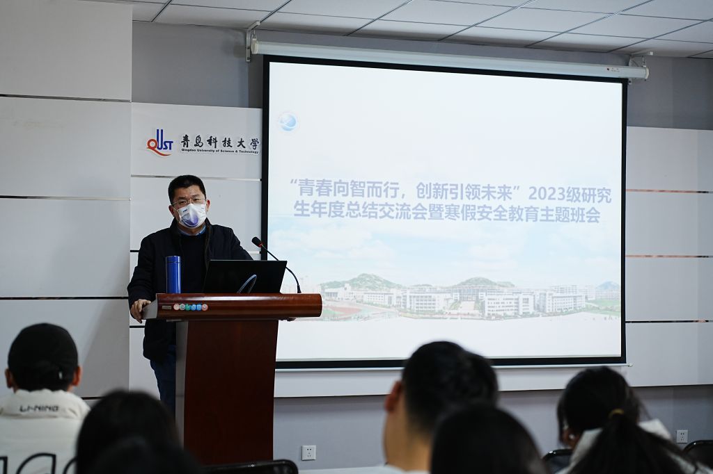 在学院楼410会议室召开“青春向智而行,创新引领未来”2023级研究生年度总结交流会暨寒假安全教育主题班会。学院党委副书记兼副院长、2023级研究生辅导员刘名森,全体2023级研究生参加活动。