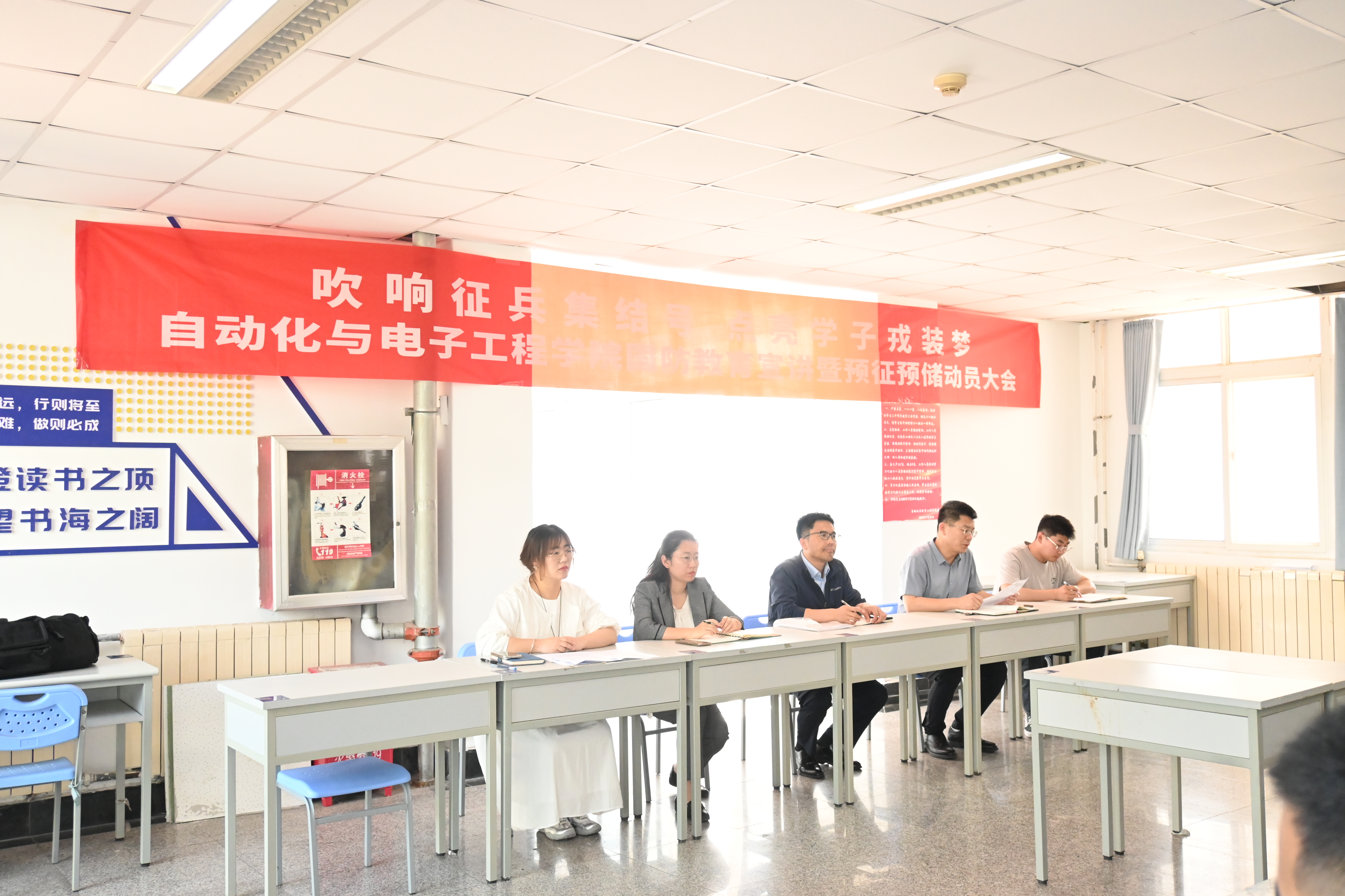 于北苑学生公寓七号楼一站式学生社区举办“吹响征兵集结号 点亮学子戎装梦”国防教育宣讲暨预征预储动员大会。校党委学生工作部副部长、武装部副部长李春家、学院党委副书记兼副院长刘名森、学院辅导员代表、退役大学生士兵、各年级意向参军入伍学生等60余人参加。
