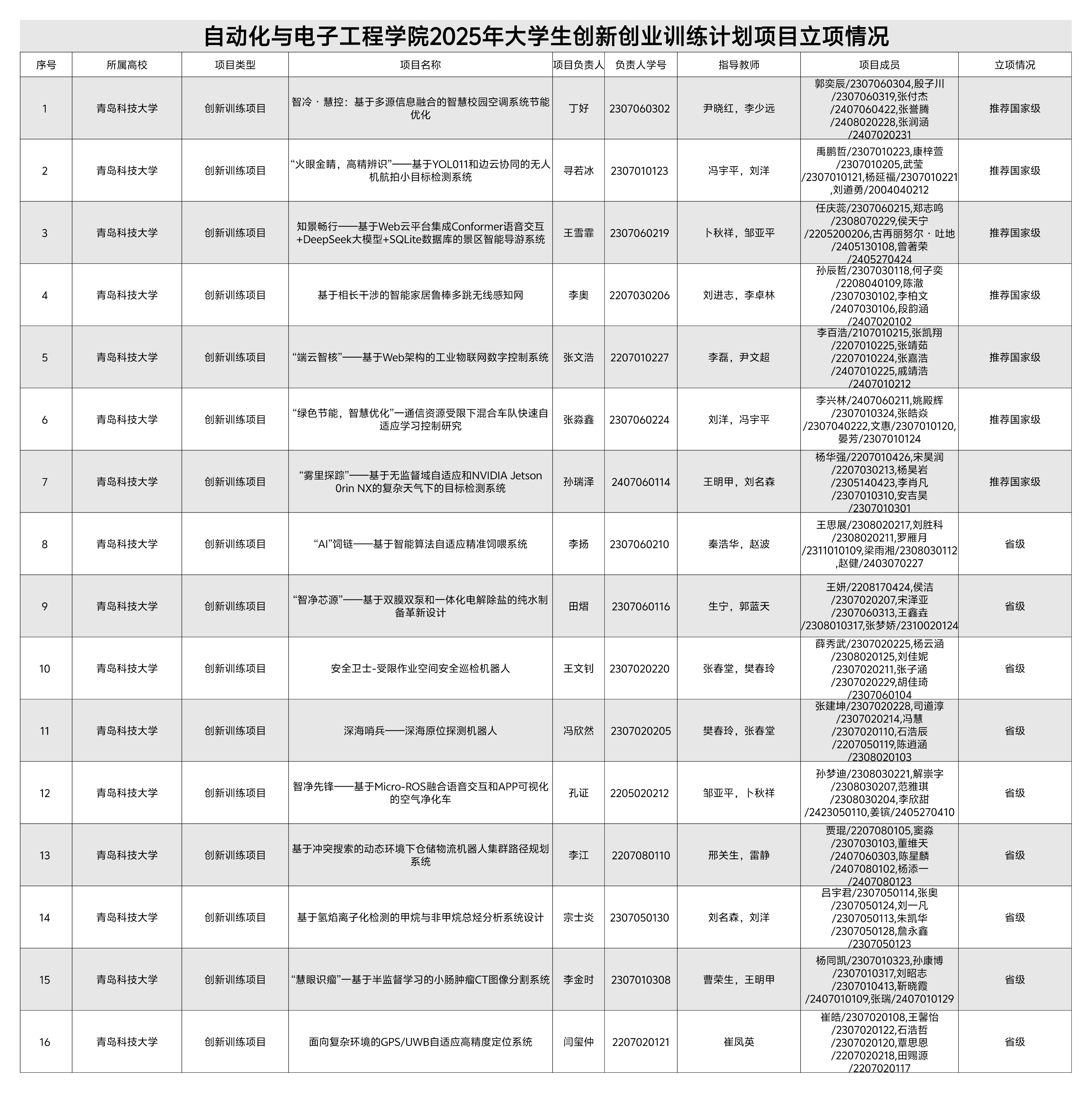 学子创新思维和实践能力的肯定,也是学院近年来持续深化教学改革、注重产学研融合、着力构建创新型人才培养体系的成果体现。这些项目的研究内容多聚焦于人工智能、智能制造、先进控制、电子信息等前沿领域,与国家和山东省的重大战略需求紧密对接,具有鲜明的学科特色和良好的应用前景。学院下一步将加强对立项项目的全过程管理,为学生提供必要的条件支持和指导,确保项目顺利结项,力争产出更多高水平学术论文、专利和科技竞赛奖项,推动学院的创新创业教育工作再上新台阶。