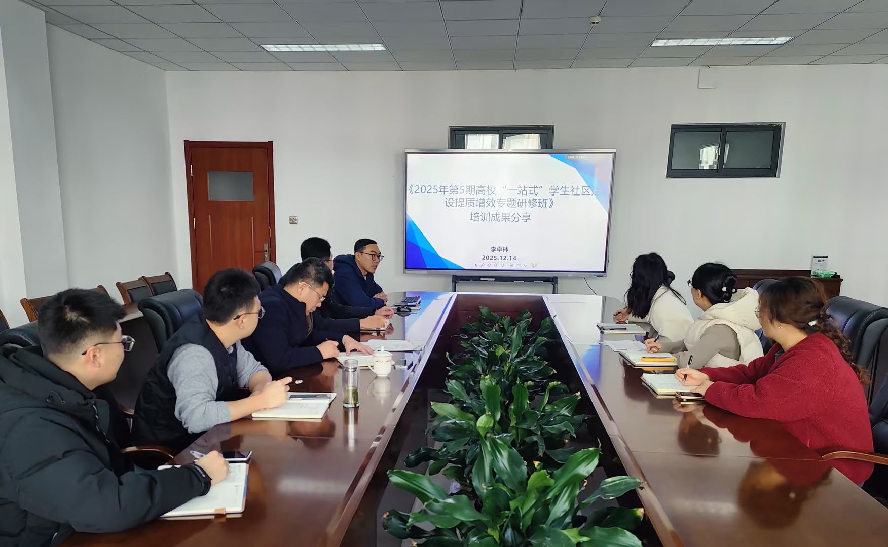 组织召开“培训归来话收获”一站式学生社区建设专题研修班培训成果分享会。学院党委副书记兼副院长刘名森、全体辅导员参加会议,共同聚焦学生社区建设的提质增效,交流学习心得。