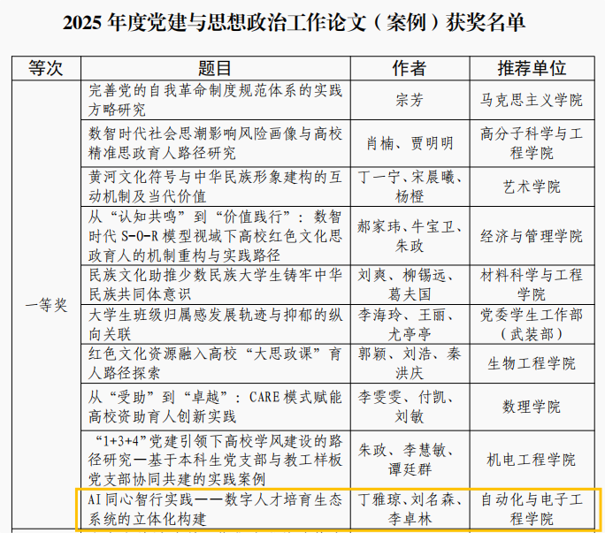 近年来,笔趣阁 始终坚持立德树人根本任务,将党建思政与学科特色深度融合,依托“智行先锋”党建工作品牌和“AI家驿站”学生社区建设,持续推动理论创新与实践探索。此次多项获奖,是学院党建思政研究的重要突破,彰显了师生团队的科研能力与育人担当。学院将以此为契机,不断深化研究、凝练成果,为学校高质量发展贡献更多智慧与力量。