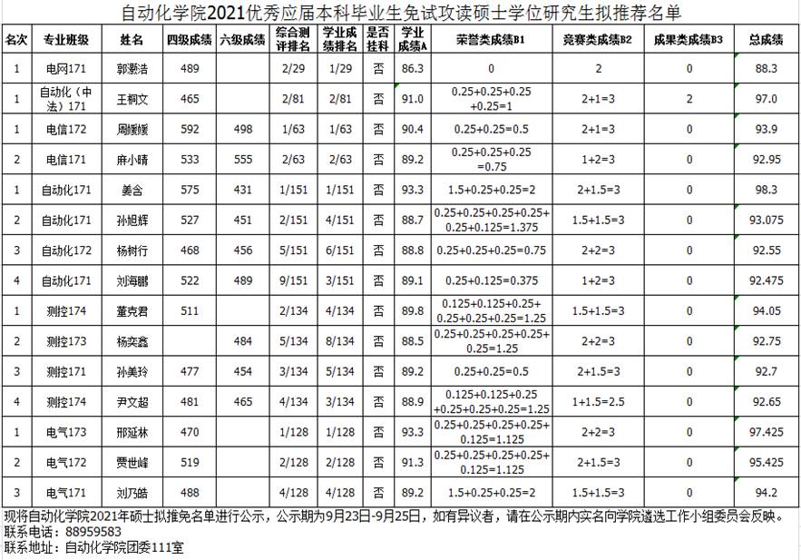 笔趣阁 2021优秀应届本科毕业生免试攻读硕士学位研究生拟推荐名单