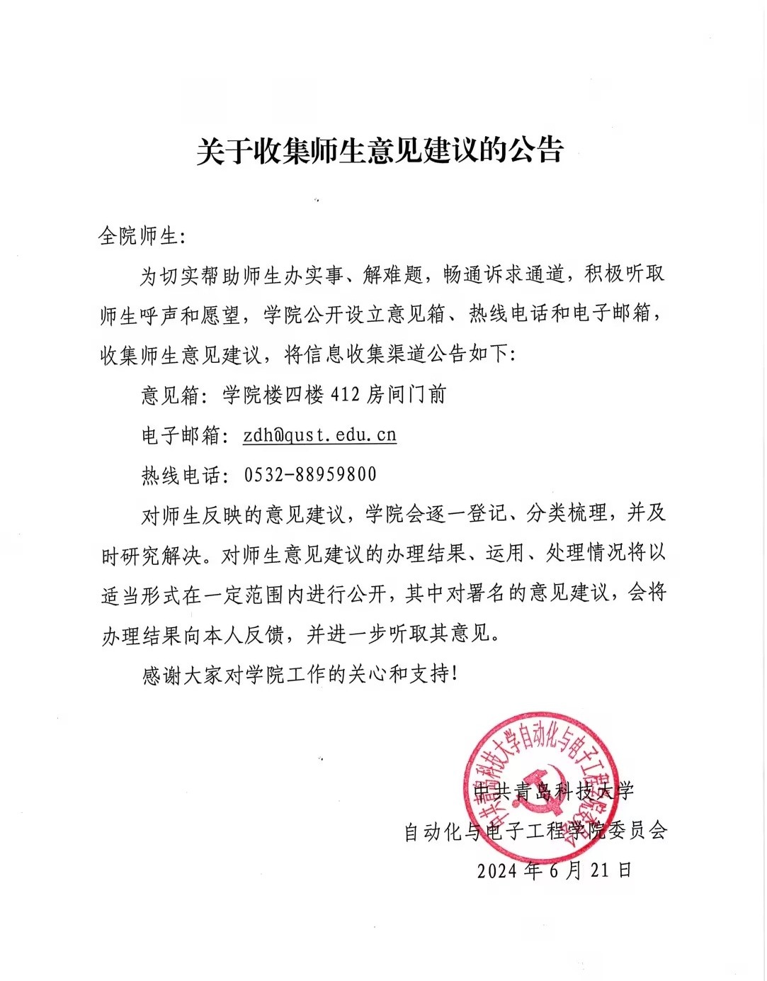 关于收集师生意见建议的公告