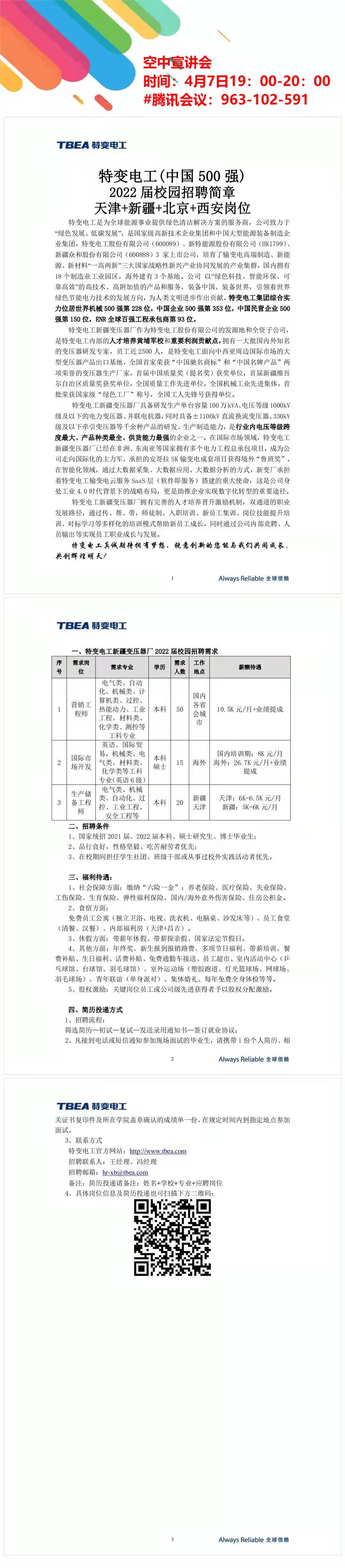 校园招聘(二十二)特变电工校园招聘