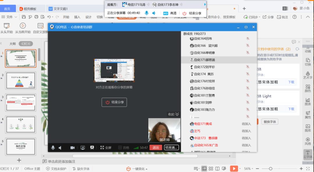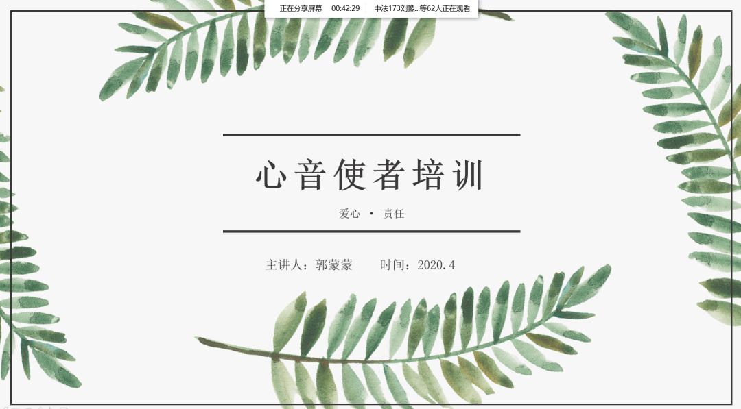 心理工作站在通过线上举办了两场“心音使者”业务培训会,2018、2017、2016级全体心音使者参加了培训,培训直播由心理工作站站长郭蒙蒙主讲。