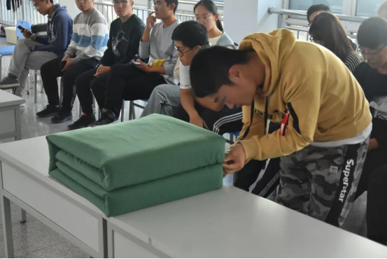 叠军被大赛是本次宿舍文化节的第一个活动。经过前期辅导员老师和军协同学的教授,参赛选手叠军被技艺高超、利落娴熟,一招一式都标准规范,很快将整齐美观的军被呈现在评委面前。经过评委打分,最终9名同学分获一二三等奖。