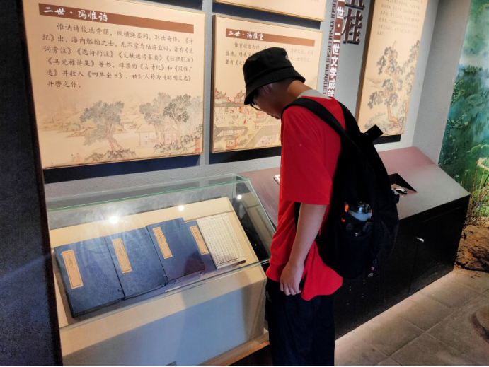 在博物馆中,队员们发现这里开设了北海世家——冯氏的纪念馆,一世冯裕,二世冯惟健、冯惟重、冯惟敏、冯惟讷、三世冯子履、四世冯琦、六世冯溥等人的事迹展示、重要场景复原;展示冯氏世家整体的文学成就。深入剖析冯氏处世治学的核心——家风家训。家风对人的影响可以说是十分重要,冯氏作为一个文学世家,他们给后人留下的文笔颇多,得到外界的广泛赞誉。而他们这种“比学”的家风,更是令我们的实践队员们十分敬佩。