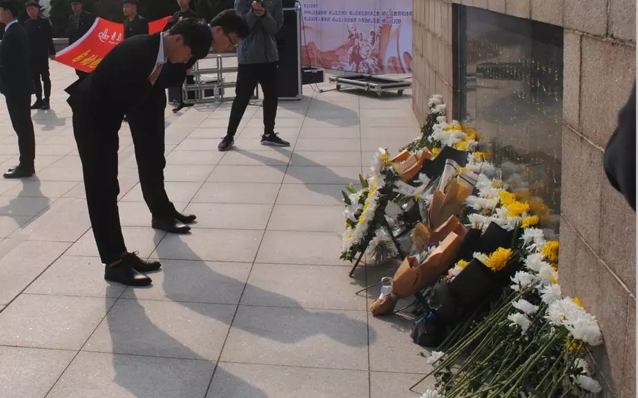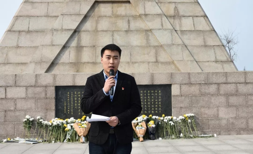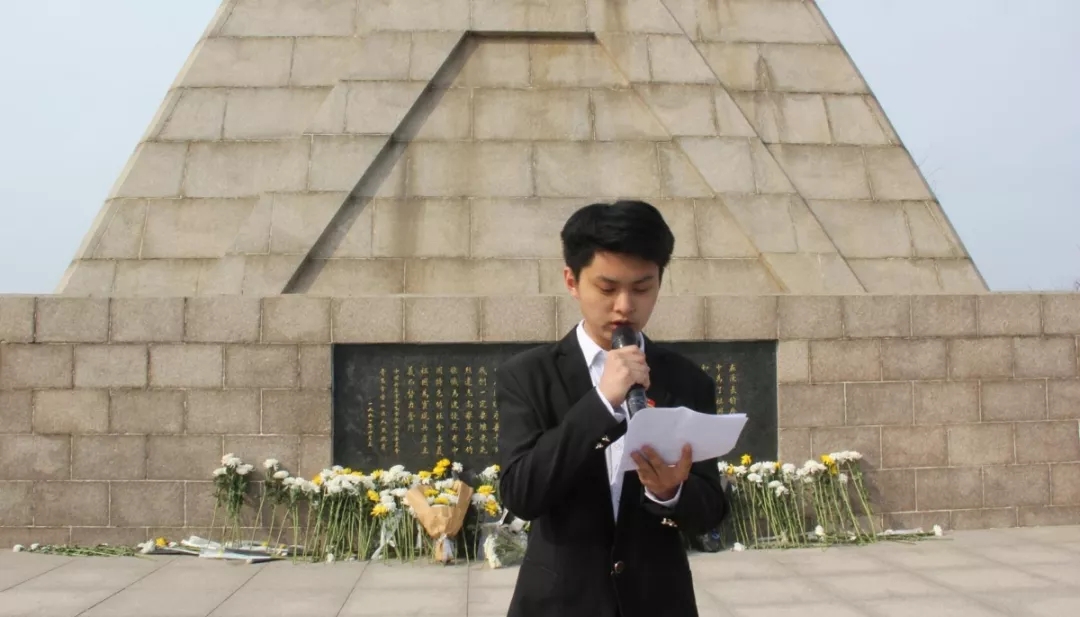 烈士纪念碑前,师生们队列整齐,神情肃穆,他们齐唱国歌并向在解放战争中牺牲的革命烈士鞠躬默哀,随后团员代表敬献花圈,以此表达对革命烈士的深切敬意和无限哀思。