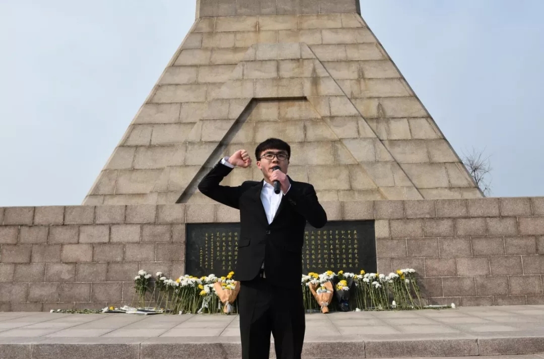 纪念碑前,全体团员重温了入团誓词,以铿锵的誓言表达了自己拳拳报国之心。