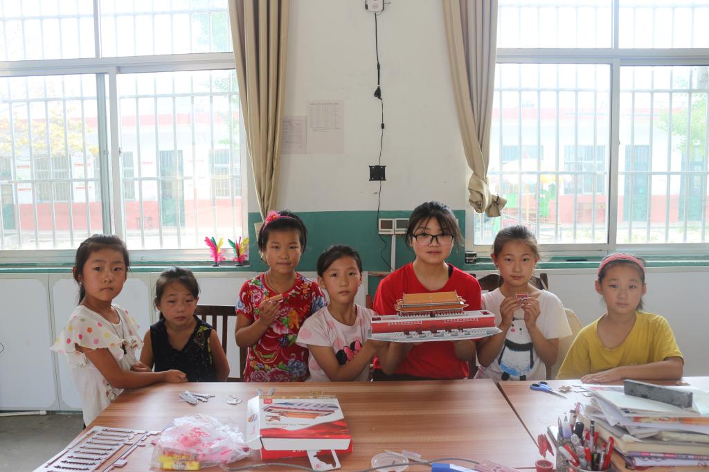 在拼图的过程中,孩子们询问了许多与天安门相关的问题,调研团成员一一作答,并给孩子们介绍了许多北京的伟大的建筑,拓展了孩子们的视野。课程结束后,调研团决定将拼图捐赠给学校,留给孩子当作纪念品。