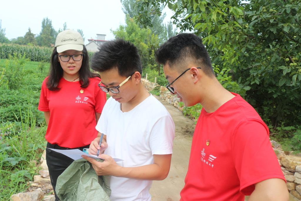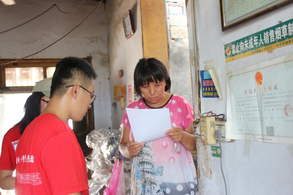 赴蒙阴县桃墟镇“蒲公英”调研团在指导老师崔瑜涵的带领下,以深入民生为主旨,向当地村民发放有关民情的调查问卷,为更深入了解当地民生,为更好实现精准帮扶提供直观的数据。