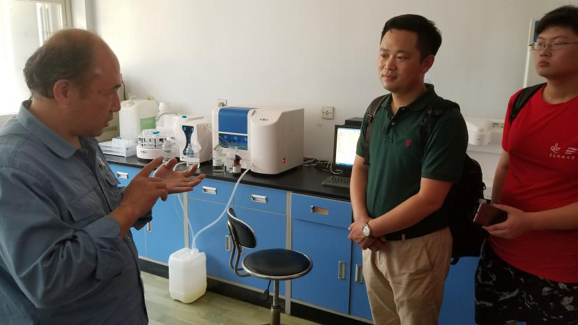 首先,调研团全体成员参观了检测净水中的阴阳离子实验室,黄斌给队员们细致讲解了实验器材检测水中阳离子的过程以及应该注意的问题。