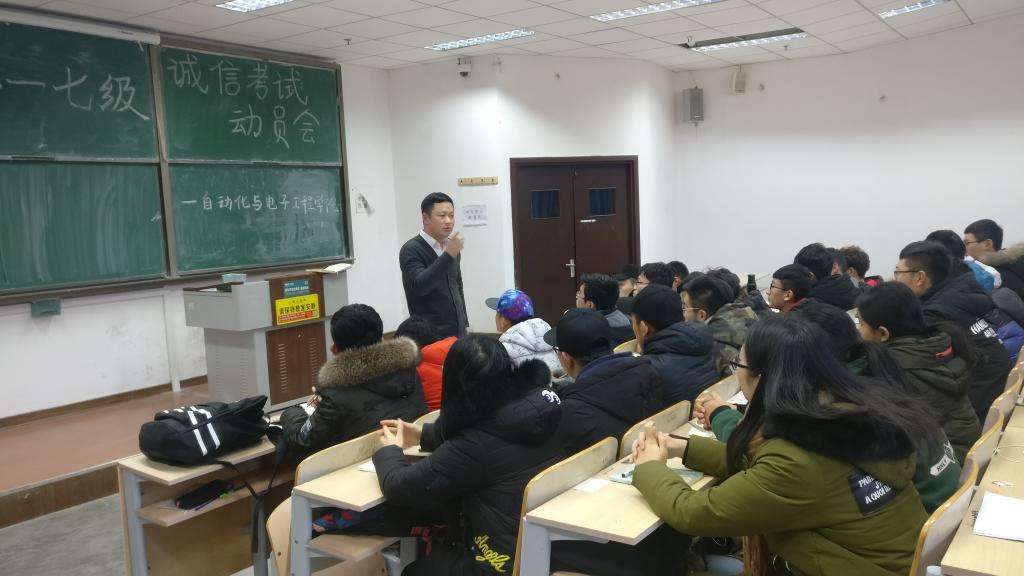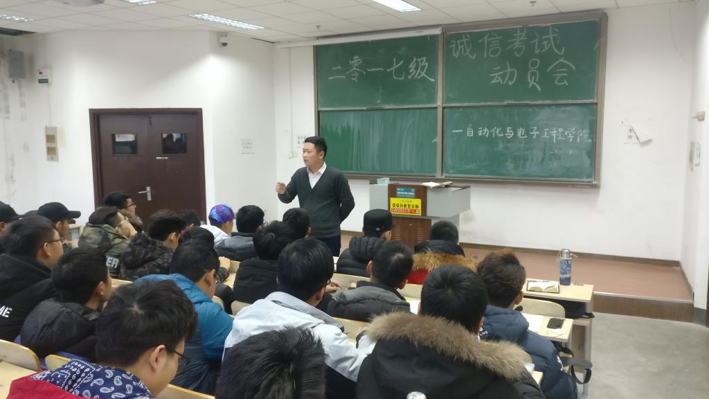 在明德楼328教室举行了2017级诚信考试动员会,会议总结本学期的学生工作,督促大家及时进行有效复习,严肃考风考纪、争做诚信考生。2017级电气、电气(3+4)、测控和电网专业的全体班委参加会议,会议由17级辅导员老师刘海波主持。