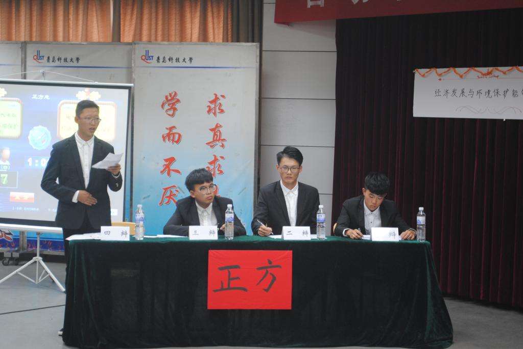 双方辩手做完自我介绍后,比赛正式开始。陈词环节中,正方一辩引用习近平总书记的“绿水青山就是金山银山”,提出党的十七大和十八大就已经对环境保护做出了明确的规定,指向其“经济发展与环境保护能并行”这一观点。而反方一辩则从理论上分析了经济的增长需要人减少对自然的干预,认为二者并行不切实际。