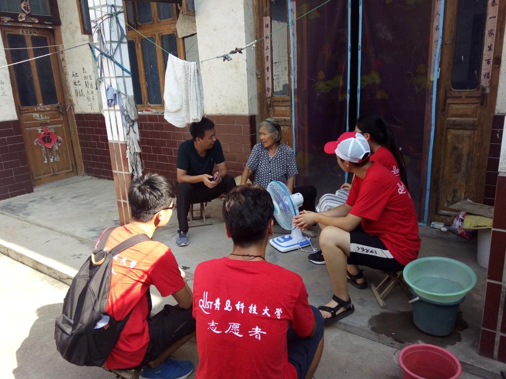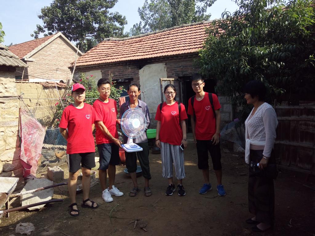 为了感谢村民们热情的帮助,在学院的资助下,实践团的队员们拿着八台电风扇前往村委会办公室。在经过与村干部的仔细商讨后,确定了村里的八户需要帮助的贫困户名单。队员们带着学院的心意和自己诚挚的问候,在村干部的带领下,前往宋立玉、侯凤山、刘纪伟等人的家中。面对队员们的来访,老人们都很激动,但又为没能好好招待队员而感到愧疚。在队员们和村干部的安抚下,村民们也敞开了心扉交谈了起来。这些贫困户中有儿女早逝,白发人送黑发人的悲伤;有儿女健在却有精神病恶疾缠身的苦痛;也有正值壮年,却只能瘫躺着床上的无奈。在刘纪伟老人的家里,破旧的小院里凌乱的堆放着老旧的农用工具,昏暗的小屋里只有一盏灯,和一台布满灰尘和蜘蛛网的老式风扇。队员们帮助老人把电风扇插上电。看着电扇转动起来,老人感受到阵阵凉风后,不禁热泪盈眶,队员和村干部一行人也偷偷拭去眼泪。在结束走访后,队员们会到村委会办公室,就15天实践所得的感受体会及一些个人见解与村干部进行密切交流,并感谢村干部及村民们的热情照顾和帮助。刘书记表示了对队员们表现的肯定,并希望以后继续来茶坡村开展实践。