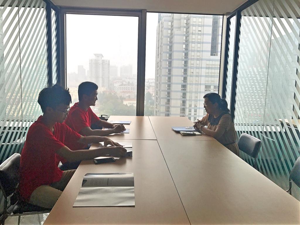 4名志愿者到达青岛海信集团进行更深一步的调研活动。本次调研活动有幸邀请到海信集团网络科技股份有限公司的就业部主任作为嘉宾进行访谈。
