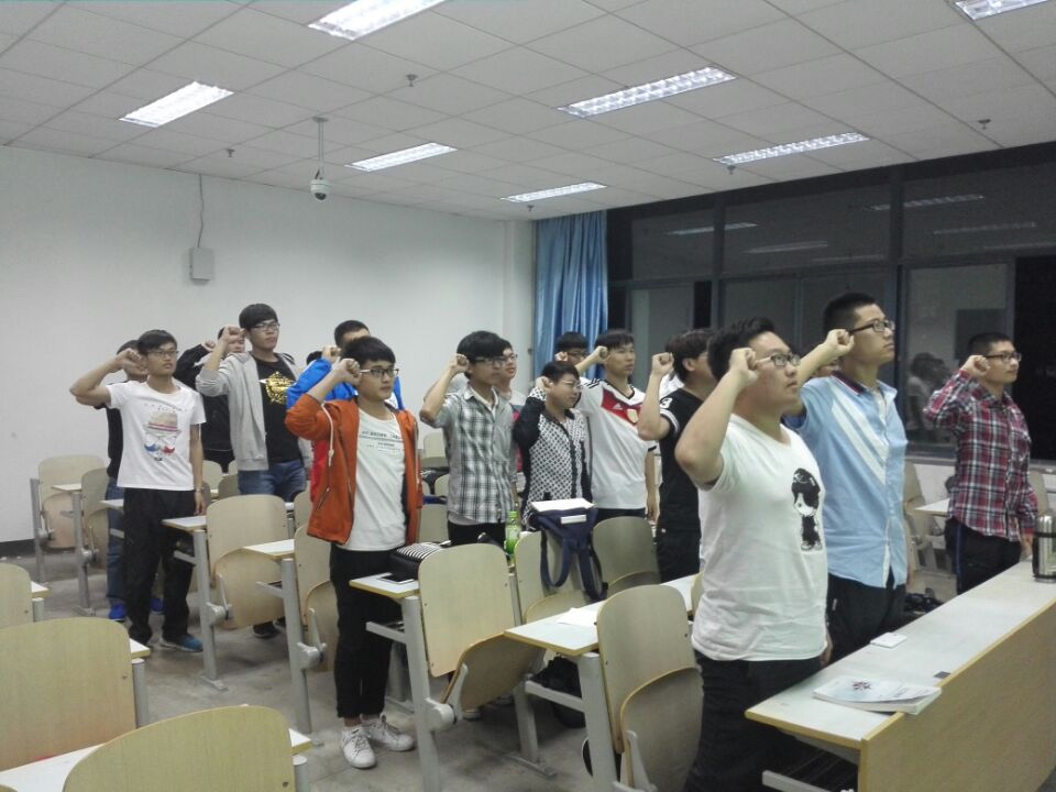 班会初始,同学们先认真观看了视频《旭日东升-五四运动》历史纪录片,并随后由同学积极表达自己的观后感;接下来,胡凯通过使用自制的PPT进行五四运动的历史宣讲,在感染现场气氛的同时,也使同学们触碰到了历史的厚重感。在翟秋华、崔金源演讲报告中,通过简洁的语言向在场的同学传达了“如何做好21世纪新青年”的责任号召以及做法。最后,班长盖建勋总结发言,并带领全班同学进行了宣誓。