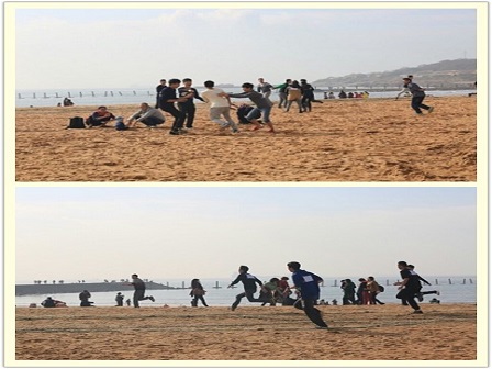 此次活动由测控154班班长马志超制定具体计划,计划包括实践路线、互动游戏、餐饮、资费及安全等问题。活动地点主要定在八大关和第二海水浴场。八大关活动期间,同学们分成了三组,开展了“撕名牌”比赛。比赛过程中,“敌对”双方“你争我赶”,互不相让,更有不少女生“巾帼不让须眉”,连撕多人,为比赛增添了不少的兴趣。游戏最后,获胜方获得了一份神秘礼物“午饭加餐”奖励,更浓厚了同学之间的融洽氛围。海水浴场活动期间,又进行了“同心协力”、“沙滩足球”、“贴饼”等游戏,同学们踩在柔软的沙滩上,拼尽全力为“荣誉”而战,虽不时有气馁声传出,但最后终被笑语声填满。此次活动,同学们积极参加各个游戏,努力备战,用矫健的身姿和灿烂的微笑在阳光下尽情挥洒着青春的汗水。最终,本次活动在同学们的不舍与合影中画上了圆满的句号。